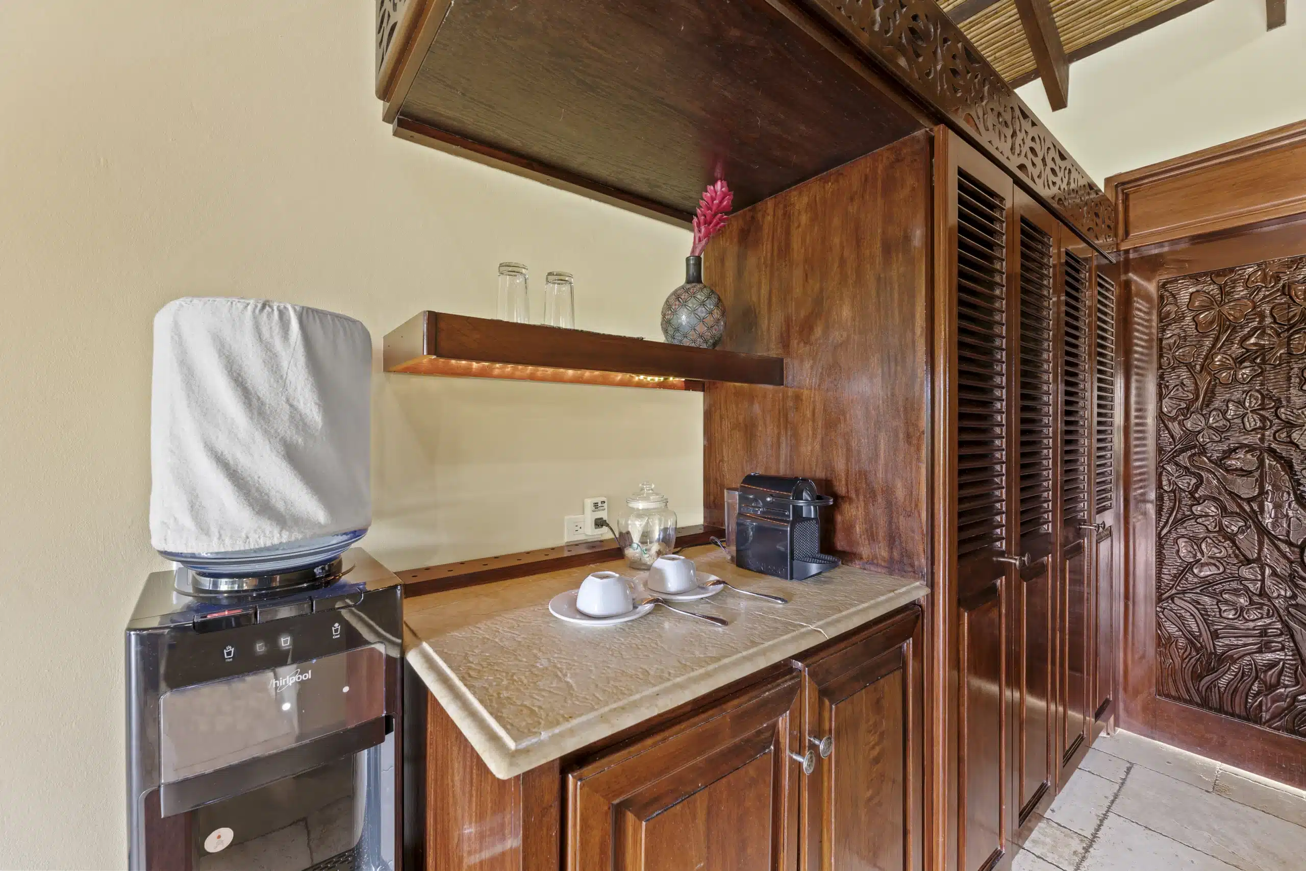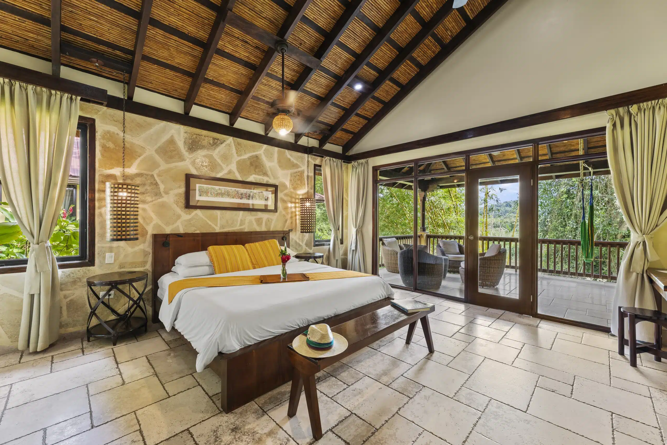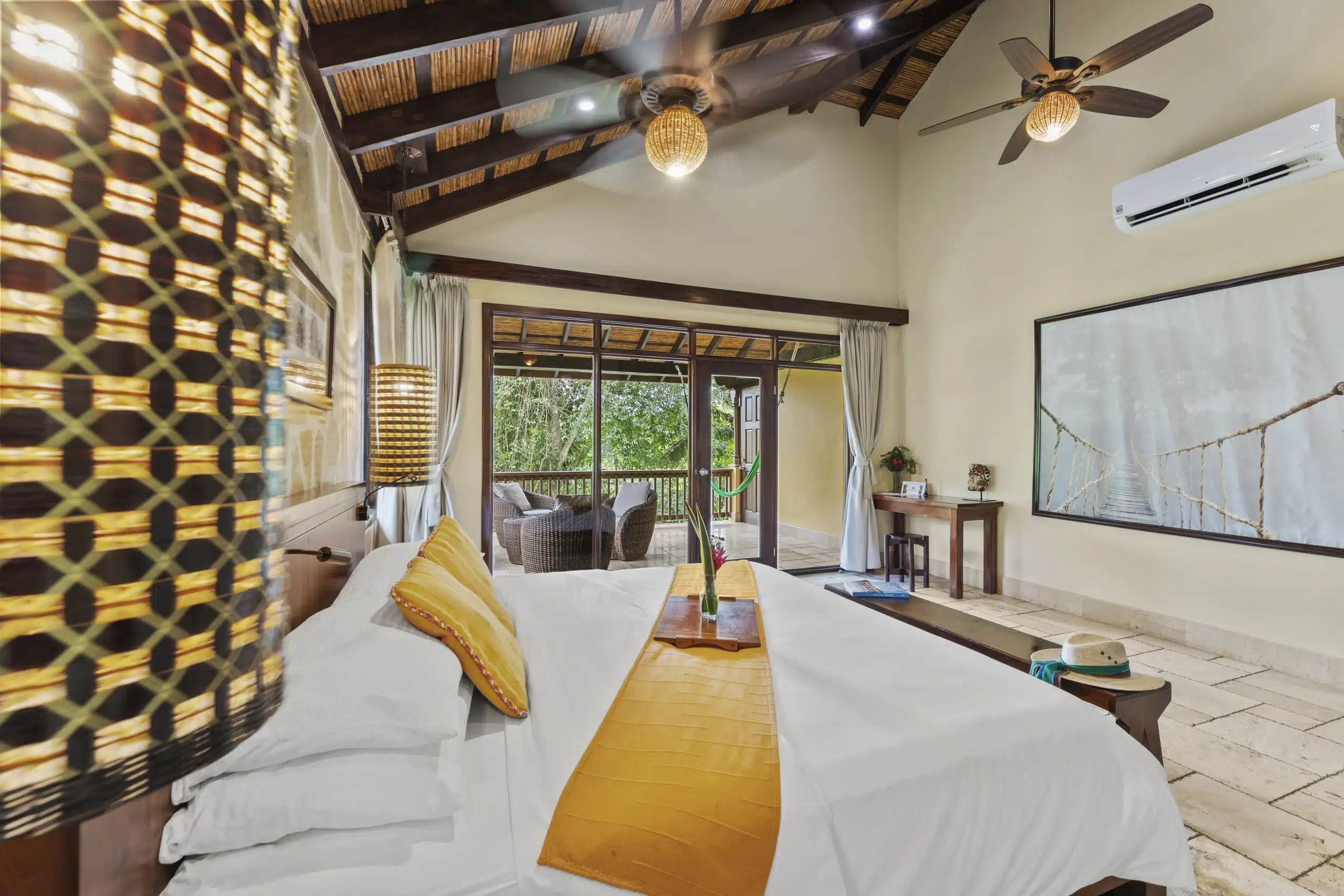 Wake up to the soothing and majestic views of the Sibun River and the Maya Mountains when staying in a Riverview Room. Along with a breath-taking view, these rooms fuse local artwork along with contemporary design and functionality, creating an atmosphere of serenity. A duplex-style designed room with units that features a coffee maker, mini bar, safe, hairdryer, an open air tub and a step-out balcony. Furnishing includes a king bed, marble bathroom and an outside coffee sitting area.